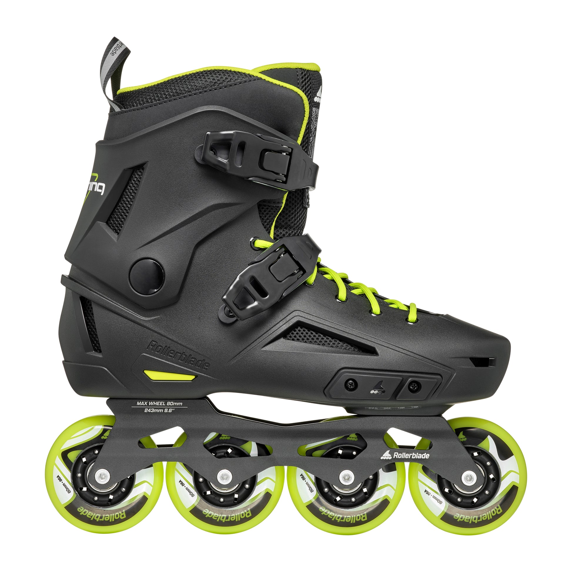 - ROLLERBLADE URBAN 80mm/85A WHEELS and SG7 bearings optimize grip, maneuverability and speed while adding stability with its 243mm extruded aluminum frame and racing axles.