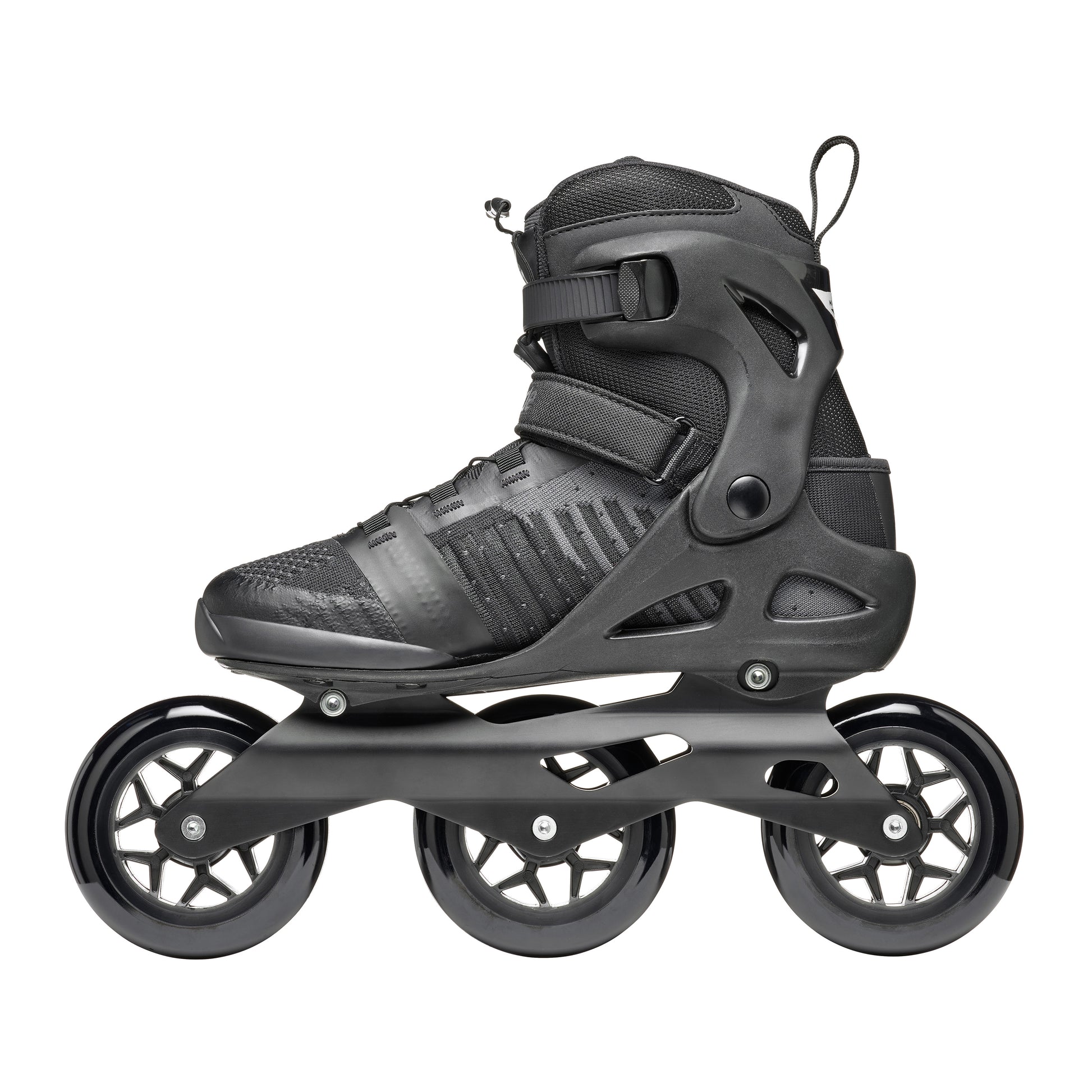 The Macroblade 110 3WD provides superior support for skaters who want to go fast. Full-height boot cuff design provides superior lateral support and the Footboard Sizer provides two sizes in one skate. It enables skaters to insert the Footboard under the insole to create a snugger, more performance fit or remove it to accommodate the bigger size for more room in their skates. This is paired with a 3x110 set-up creates greater velocity for intermediate to advanced levels. 110mm Hydrogen SE wheels with Twincam ILQ-9 Classic Plus bearings, ventilated knit uppers and a secure 45° buckle/strap secure closure system with SL2 speed lacing make this an easy, lightweight choice for faster skating. Optional brake included.
